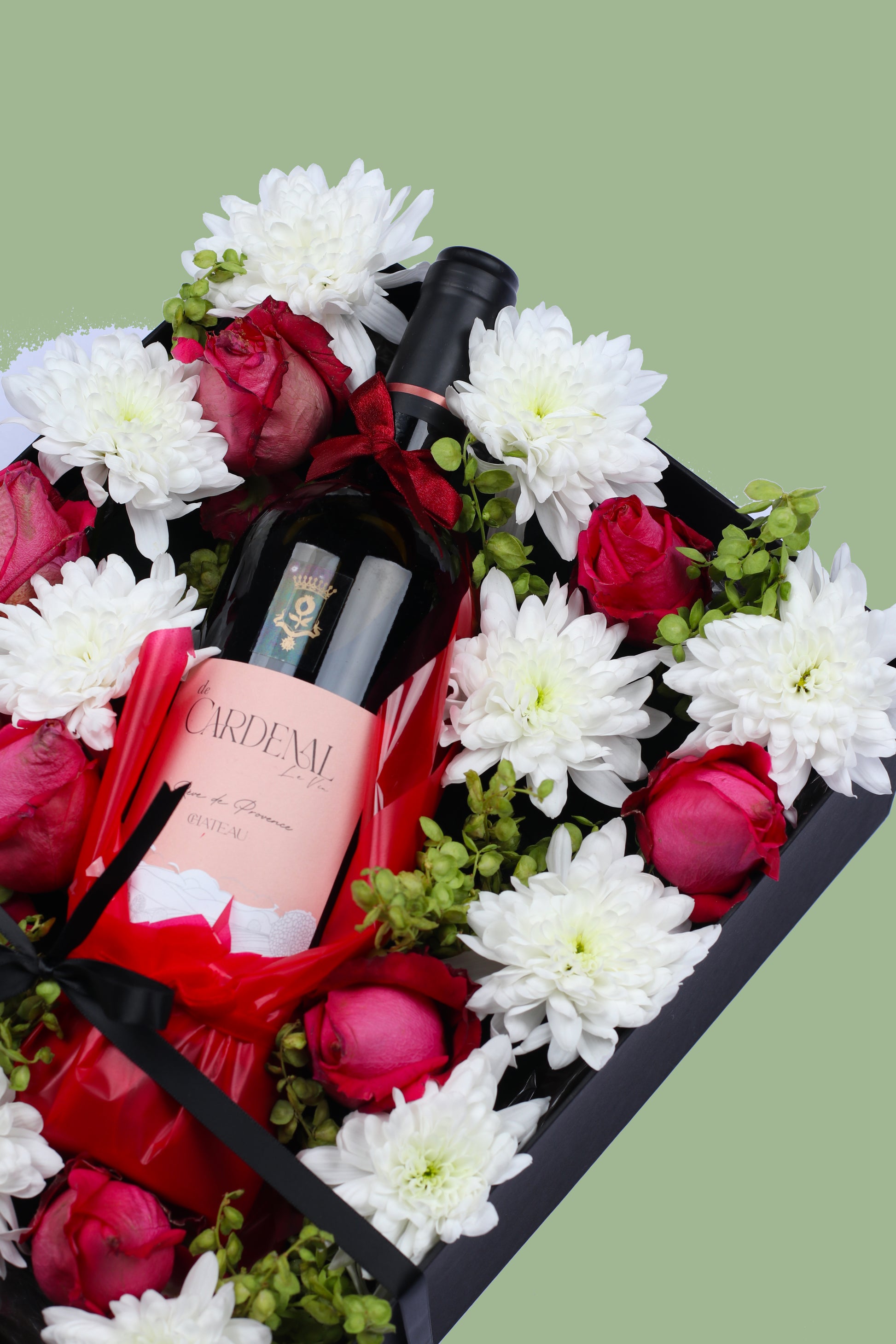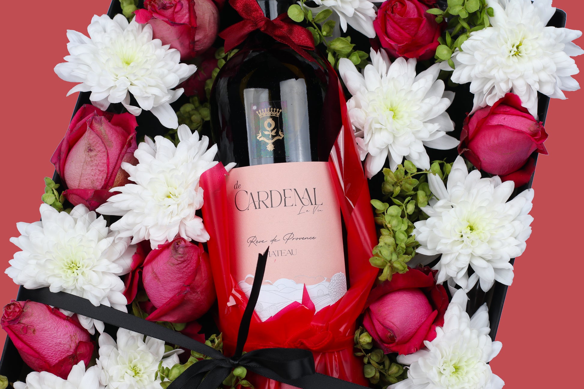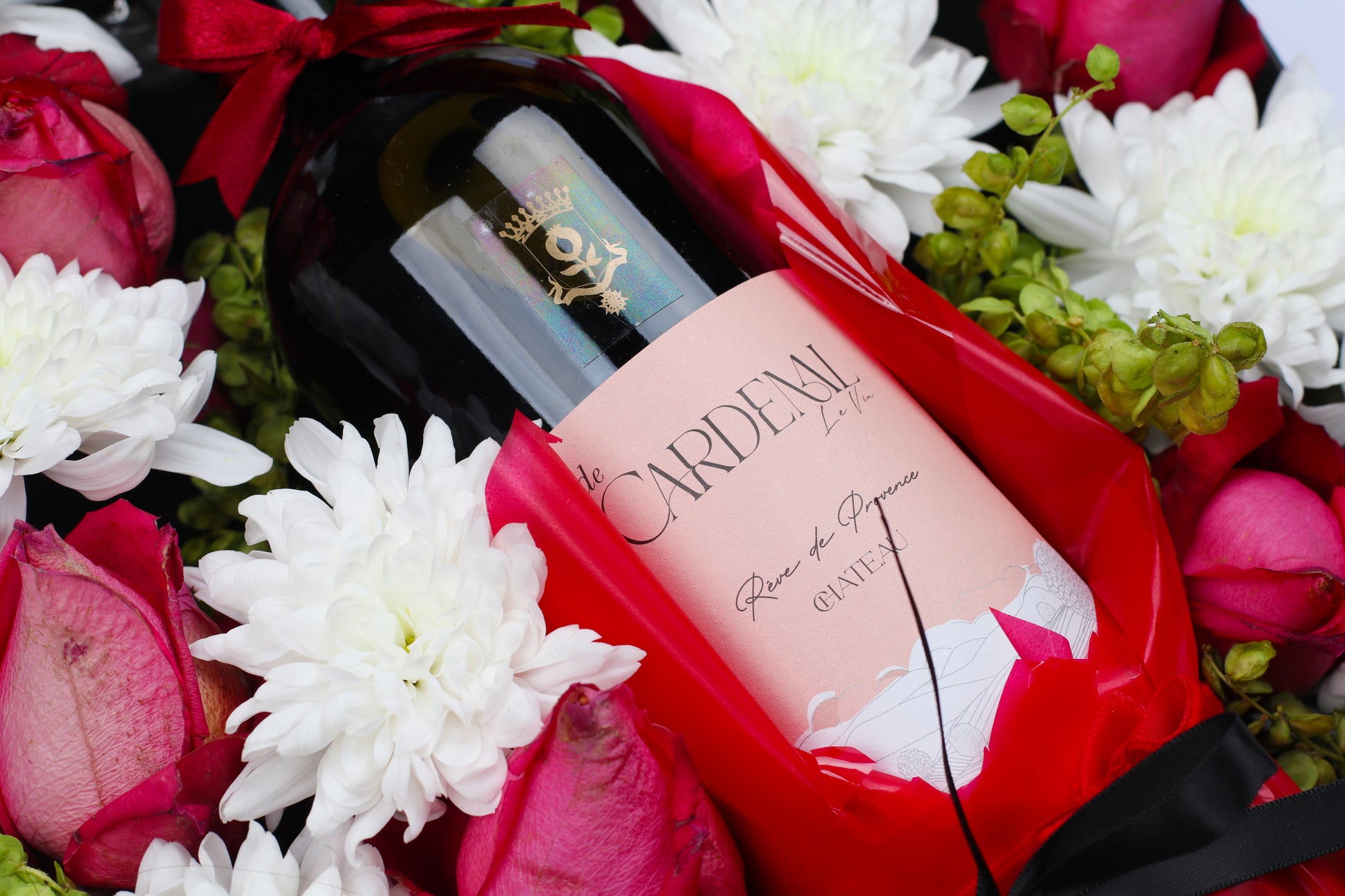 1 bottle of red wine “Reve de Provence”, Roses and flowers.